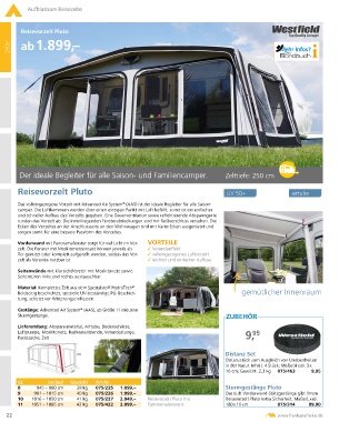 10 1016 – 1050 cm 41 kg 075/227 2.049,– Reisevorzelt Pluto mit Reisevorzelt Pluto extra Sicherheit. Maße (L x ø):