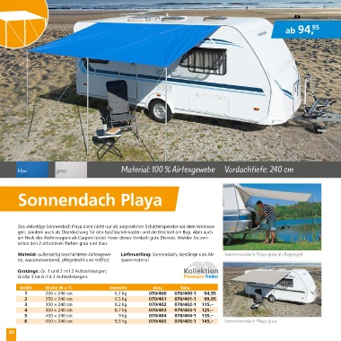 6 450 × 240 cm 9,3 kg 070/405 070/405-1 145,– Sonnenvordach Playa grau